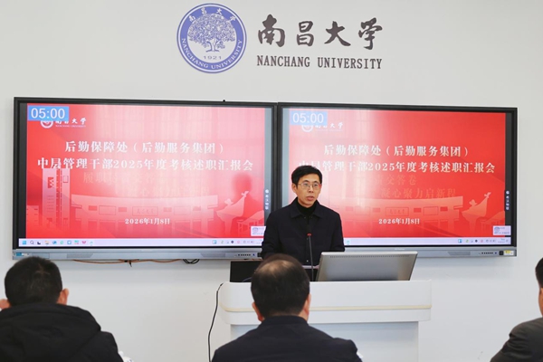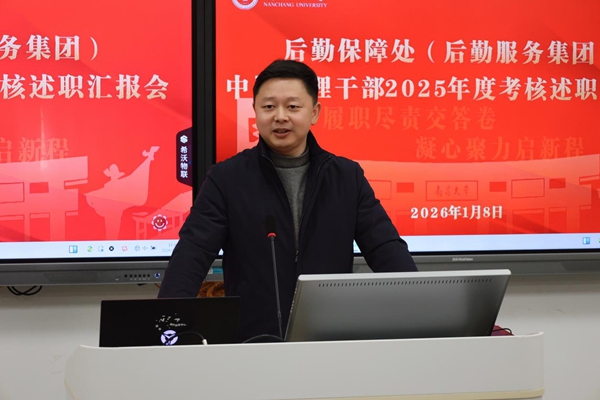 1月8日上午,南昌大学后勤保障处(后勤服务集团)2025年度中层干部考核述职汇报会在慧源楼智慧教室顺利召开。后勤各科室(中心)的25位中层管理干部参加述职考核,处(集团)全体领导班子成员悉数到场,会议特邀学校部分党政职能部门负责人担任嘉宾评委,为考核工作提供多维度指导与评价。后勤保障处副处长罗剑主持会议。