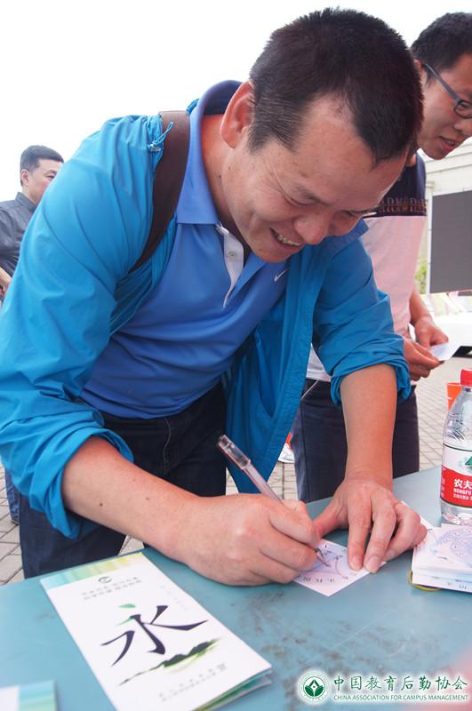 惜水 爱水 从我做起”的横幅上签上了自己的名字,表示自己愿意加入创建节水型校园中来。