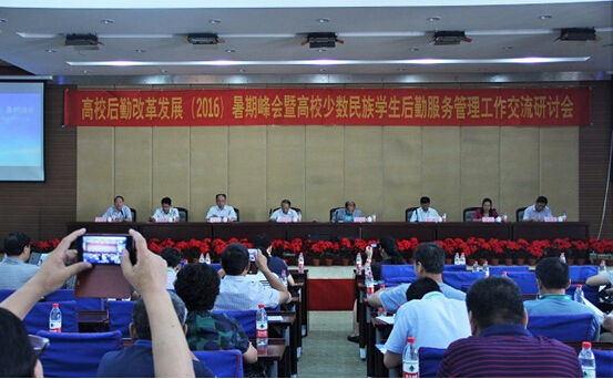 2016年8月11日,由中国教育后勤协会主办的“高校后勤改革发展(2016)暑期峰会暨高校少数民族学生后勤服务管理工作交流研讨会”在乌鲁木齐隆重召开。来自全国高校后勤系统的领导、专家和一线管理者近200余人出席了本次峰会。中国教育后勤协会会长程天权、教育部民族教育司司长毛力提·满苏尔、教育部发展规划司基建管理和后勤改革处处长王雪涛、新疆维吾尔自治区教育厅副厅长张国辉、中国教育后勤协会副会长、复旦大学副校长许征、新疆维吾尔自治区高校后勤研究会理事长、新疆医科大学党委副书记张刚强、广东省教育厅党组成员、巡视员赵康等应邀出席会议。会议由中国教育后勤协会副会长兼秘书长黎玖高主持。