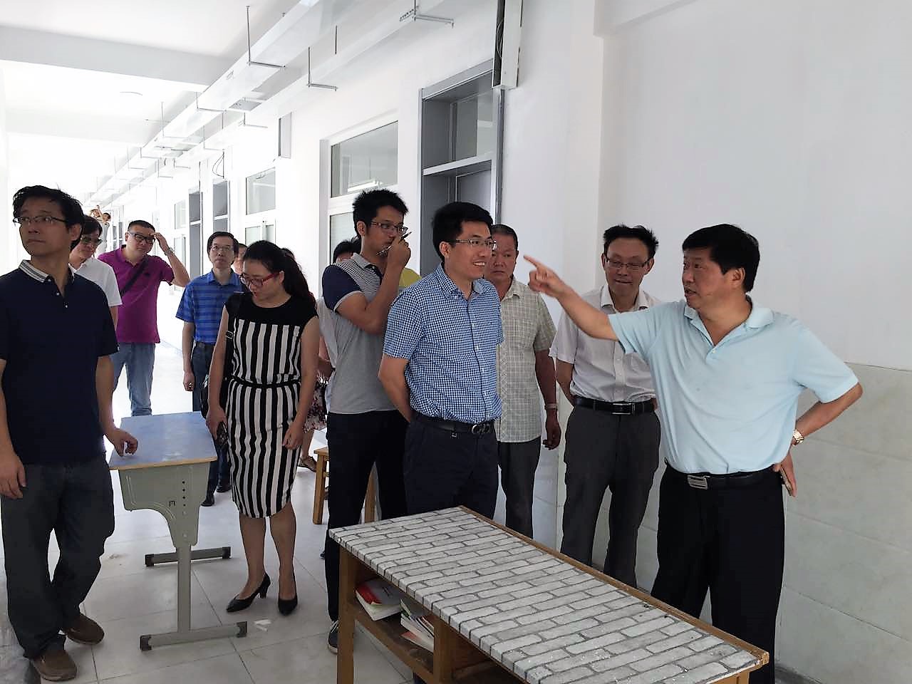 高明副书记一行首先来到暑期改造出新的厚学楼,从6楼到1楼,对教室、卫生间、教师休息室、公共区域逐一进行了检查,对工程结束后的环境保洁、设备设施调试工作提出了具体要求。高明副书记指出,厚学楼改造工程时间紧、任务重,工程建设方顶着酷暑,严密组织,精心施工,能够在开学前完成任务,实属不易。他要求大家抓紧完成环境保洁和设备设施调试工作,做到窗明几净、家具到位,让老师和同学们能够在新学期有一个新的学习环境,各项后期工作要确保正常教学工作的顺利开展。米展部长和童毛弟总经理表示,将密切配合,要求相关人员明确任务内容和时间节点,全力确保厚学楼正常使用。