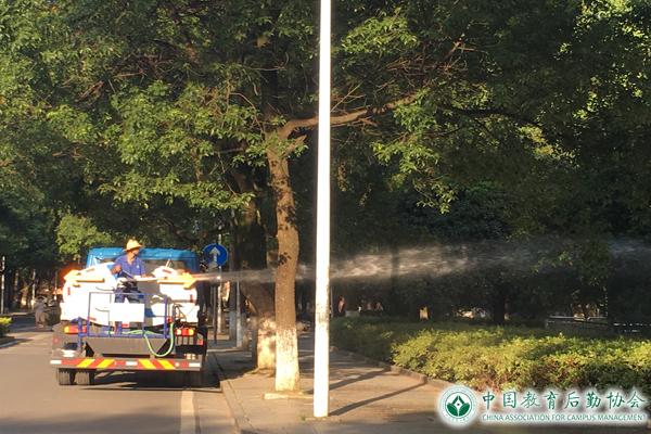 假日的校园宁静了许多,校园绿化带中绿化人员的身影依旧穿梭忙碌,他们全副武装,顶烈日、战高温,奋战在生产一线,在短短的30天假期,完成了各校区行道树枯枝清理、乔灌木及绿篱整形修剪、病虫害防治、草坪修剪、抗旱等绿化养护工作,完成乔灌木绿篱修剪、草坪修剪等达100万余平方米,外运枯枝80余车。