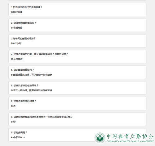 持续开展线上新生住宿习惯调查。我校是国内第一家对新生住宿习惯进行调查的高校,继 2015 年首次推出以来就受到各大媒体广泛关注。今年,后勤集团共收到6415份新生住宿习惯调查问卷,在以往工作经验基础上,又进行了不断改进和完善,促进新生宿舍的科学合理分配。