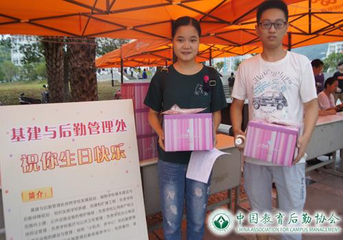 9月11日,正值我校迎新期间,基建与后勤管理处在新城、定海两个校区推出了为当天生日的新生送蛋糕的活动,共送出蛋糕13个。