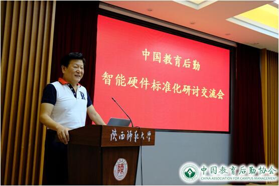 2016年9月9日,由中国教育后勤协会信息化建设专业委员会主办的“中国教育后勤智能硬件标准化研讨交流会”在陕西师范大学成功举行。本次会议旨在为共同推进教育后勤智能硬件标准体系建设及行业发展,全面推进全国教育后勤信息化、智能化进程,总结和交流经验。中国教育后勤协会副会长朱宝铜、中国教育后勤协会秘书处办公室主任李英华、中国教育后勤协会信息化建设专业委员会副主任、同济大学后勤集团党委书记林强等领导、专家,以及高校后勤负责人、优秀硬件厂商等50余人参加本次会议。会议由中国教育后勤协会信息化建设专业委员会常务副秘书长石磊主持。