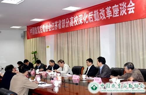 2016年10月14日,“中国教育后勤协会江苏省部分高校深化后勤改革调研座谈会”在东南大学召开。中国教育后勤协会会长程天权出席会议,协会秘书处发展研究部主任皮光纯、办公室执行主任马丹陪同调研。江苏省出席座谈会的有:江苏省教育厅安全保卫与维护稳定处处长焦伟,江苏省高等学校后勤协会会长、东南大学副校长黄大卫,江南大学副校长田备,南京工业大学副书记兼副校长高明,南京大学校长助理孙冶东,南京大学后勤集团总经理秦志祥,东南大学总务处处长梁书亭,江南大学后勤保障系统党委书记王剑星,南京工业大学后勤保障部部长米展,江苏省高等学校后勤协会副会长兼秘书长黄在宇、协会办公室主任陈光华。座谈会由黄在宇秘书长主持。