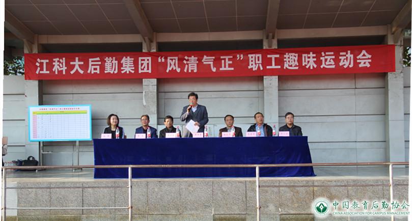 为进一步加强江苏科技大学后勤集团企业廉洁文化建设,提升后勤集团企业形象,同时也为了活跃集团企业文化氛围,丰富职工文体生活,提高全员综合素质,在学校开展廉洁文化月系列活动之际,集团于11月5日在东校区体育运动场举办了“江苏科技大学后勤集团‘风清气正’职工趣味运动会”。开幕式上,校工会魏友章主席和后勤集团党委王兴伯书记作了致辞,金剑平总经理宣布运动会开幕。