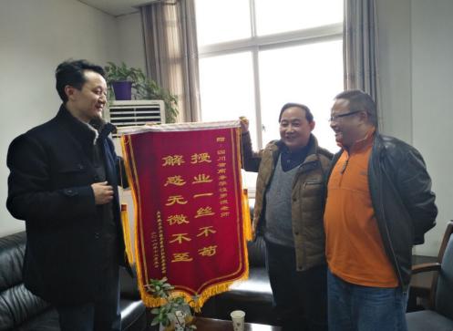 近日,成都航空职院后勤服务总公司副总经理杨琦一行向四川省商务学校赠送了绣有“授业一丝不苟、解惑无微不至”的锦旗,对商务学校为我院劳务品牌培训班提供的优质办学服务和高品质的教师团队致以衷心地感谢。