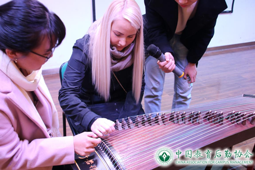 在欢送会上,中外双方的同学们都展示出了自己多才多艺的一面。一开场,大家被撩人心弦的古筝声一下子吸引过来,指尖的跳跃演奏出一首荡气回肠的古乐曲,被深深吸引的外国同学更是上台亲身体验。