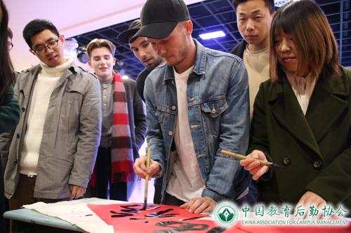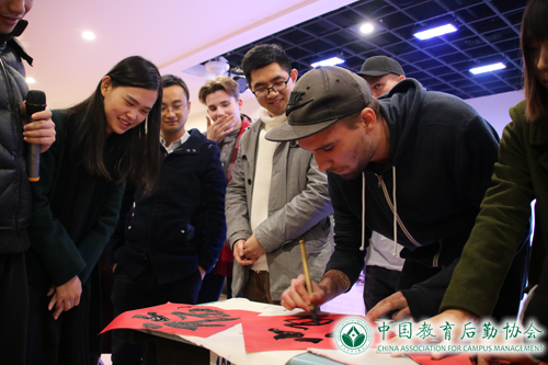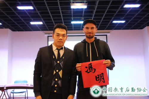 随后,通过“击鼓传花”的游戏方式,邀请三名留学生()上台体验中国书法的魅力,写“福”字,寓意福到,送去我们最美好的祝福。在作品评比中,获得一致好评的留学生(Oliver)还收获了一幅写有自己中文名字(冯明)的作品留念。
