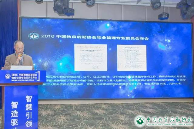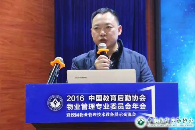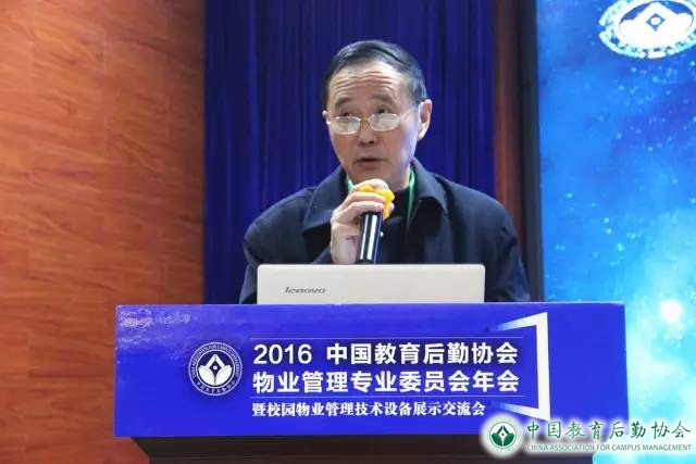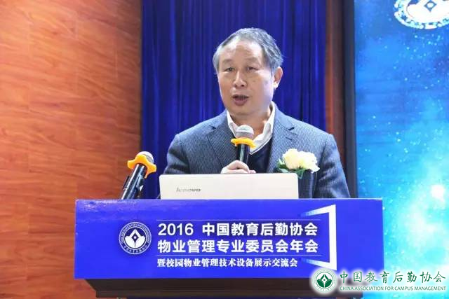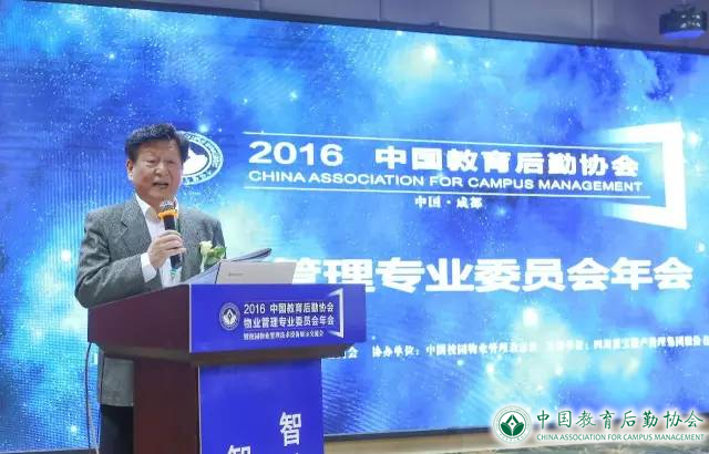 中国教育后勤协会会长程天权首先发表致辞。他代表中国教育后勤协会对中国教育后勤协会物业管理专业委员会(2016)年会的隆重召开表示热烈祝贺,对与会领导、各高校后勤人员以及企业代表的到来表示热烈欢迎,向给予本次会议大力支持的四川省高校后勤协会和四川省高校后勤系统的同仁表示衷心感谢。程会长表示,物专会在朱宝铜副会长的亲自带领下,在各位主任、秘书长、全体委员单位的共同努力和大力支持下,取得了突出成绩,值得肯定。他希望,物专会站在新的起点上,认真总结经验,深刻理解和落实协会一届四次理事会的工作要求,理清下一步的工作思路,明确新一年的工作重点,更好地发挥行业组织的作用,进一步做好五个方面的工作:一是积极推进组织建设、专业化队伍建设、制度建设,切实完善内部管理制度;二是要秉承兼容并包、开放办会的原则,做好会员发展和服务管理工作;三是积极适应校园物业服务管理开放、多元、规范发展的趋势,引领行业健康发展;四是积极开展校园行业标准规范研制工作,为校园物业服务市场开放与规范监管创造条件,提供依据,奠定基础;五是要整合各类优质资源,搭建平台,探索打造校园物业服务管理开放、合作、互动、共赢的协同创新发展体系,努力推动校园物业由传统粗放管理向现代智慧物业管理的转型升级。程会长还表示,希望物专会在推进校园物业服务管理社会化、专业化、标准化、现代化等方面做出新的、更大的贡献,并预祝本次大会圆满成功。