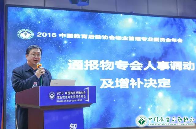 物专会副主任宋希博向大会通报了《关于中国教育后勤协会物专会常务委员会人事调整的意见》。物专会副主任刘宏进宣读了《关于表彰“高校后勤优秀物业服务项目”的决定》,并举行了高校后勤优秀师范项目颁奖典礼。