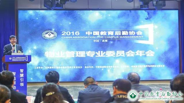 2016年12月5日上午,由中国教育后勤协会物专会主办,《中国校园物业管理》杂志社承办,四川嘉宝资产管理集团股份有限公司提供支持的中国教育后勤协会物专会(2016)年会在成都隆重召开。中国教育后勤协会会长程天权,中国教育后勤协会副会长、物专会主任朱宝铜,中国教育后勤协会副会长兼秘书长黎玖高,四川省教育厅学校后勤与产业处处长、中国教育后勤协会副秘书长、四川省高校后勤协会秘书长王方文,四川省房地产业协会专职副会长郑友才,中国物业管理协会副会长姚敏,成都市物业管理协会副会长兼秘书长巫庆敏,物专会副主任周宗安、韦曙和、吴志忠、陈鹏、宋希博、刘君彬、刘宏进、李永琪、龚水平、徐显斌、李锁全、李志平、赵伟,物专会秘书长刘德明,物专会副秘书长王永胜、唐浪、刘仁龙、刘宝、李春俐、张洪、罗树明、宋伟华、吴建强、薛萌、张勤春、高文田、杨书元、王兴凯、葛建华,以及部分地方政府主管部门和行业协会领导、高校后勤负责人、物业服务企业、展商代表共计540余人出席了年会。年会由物专会秘书长刘德明主持。