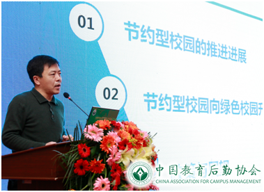 北京高校后勤研究会秘书长刘学伟做了主题为“节约型校园向绿色校园转型的思考”的报告,他结合自身经验,将绿色校园和节约型校园的不同概念进行了详细阐释,并将节约型校园向绿色校园的转型升级提出了自己的看法。