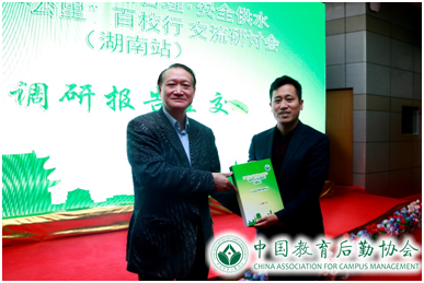 每一站会议的举办,即代表着当地调研及落地改善工作的开始。会议期间,中国教育后勤协会副会长兼秘书长黎玖高将湖南区域范围的第一份调研成果《长沙理工大学供水调研报告》交到长沙理工大学副校长刘扬的手中,并且现场启动了湖南区域高校供水情况调研报名通道。