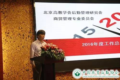 北京市高校商专会主任、原北京化工大学烛光超市总经理高建国代表北京商专会作了《北京高教学会后勤管理研究会商贸管理专业委员会2016年工作总结》主题发言。