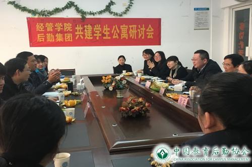 为推进学生公寓齐抓共管,建设和谐温馨学生公寓,12月23日上午,在象山苑17幢B三楼会议室,南京工业大学后勤服务集团和经济与管理学院开展了学生公寓共建工作研讨。后勤服务集团总经理童毛弟、副总经理陈才华和公寓中心主任周丽、副主任徐雯及各公寓苑区主管,与经济与管理学院党委书记杨琦、副书记刘涛及学生事务办公室主任秦艳、分团委书记张杰,进行了深入的交流和研讨。