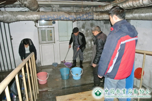 2月3日,工作人员在值班巡检过程中发现宜园三楼地下一层出现大量积水,后勤集团相关负责人及抢修人员第一时间赶赴现场进行处置。经工作人员一整天连续奋战,在当天下午顺利完成自来水管抢修工作并将宜园三楼地下室积水全部清理干净,及时恢复该楼正常生活秩序。由于学校供水管线老化及天气等原因,此类漏水等突发事件在寒假期间时有发生,为避免造成更大损失及二次事故,后勤集团工作人员针对各类突发事件具体情况采取适当措施及时进行抢修,在寒假期间共处置各类漏水等突发事件18起,水暖维修班完成维修单共277起,土建零修班完成维修单共21起,综合维修班完成维修单共19起,电梯维修班完成维修单共10起和电梯保养28次,电力维修班完成维修单共183起、为收发室安装排风扇2台以及对理工楼及理工配楼卫生间照明设施进行全面检修。