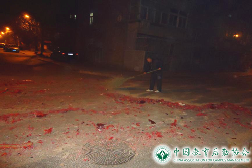 (初一和初六凌晨清扫校园烟花爆竹残屑)