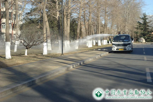 (对学校大型绿地进行增湿作业)