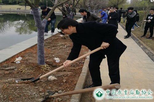 开幕式结束后,师生代表与文一公司员工一起挥锹铲土,在月雅湖畔种下20棵柿子树。表达了万“柿”如意,“柿柿如意”的美好祝愿。