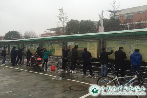 为全方位配合此次活动,公寓中心管理部在生活区开展了公共环境大扫除。对卫生死角进行排查,落实责任区域。对散乱堆放在公共场所的杂物及建筑垃圾做到及时发现及时清理、对公共车库、公共绿地的卫生进行了全面细致的检查和清扫工作。同时由中心党员及积极分子、学生党员、义工组成的服务小分队不顾天气的恶劣,在雨天的双休日对生活区内的牛皮癣进行了统一清除,生活区小广告集中区被清理干净、焕然一新。