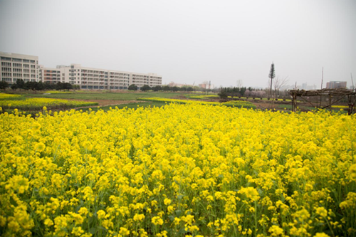 据了解,这些油菜花是由后勤集团校园管理公司的工作人员种下的。此时,“姿容清丽厌奢华,平平淡淡不自夸”这句描写油菜花的诗句放在这群默默无闻工作的校园美化师身上也并不违和。