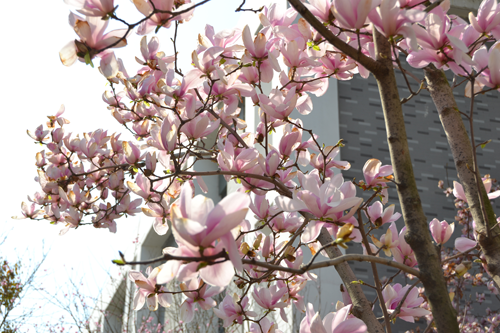 后勤管理处通过前期规划和精心准备,利用春季适宜绿化的大好时机,对中心校区部分道路两侧树木进行了移植和补栽,已形成了以紫玉兰、樱花、紫叶李等美化主题的景观道路。目前各色玉兰花已进入盛花期,吸引了大批师生观赏,大家行走在如画的小路上,感受着校园中春的勃勃生机。