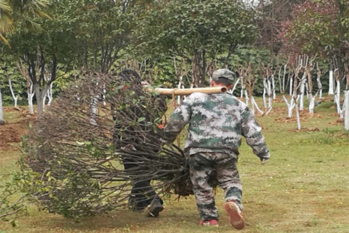 此次树木移植共涉及家属二区、家属三区及校前区1100余棵树木、11000m2绿篱色块。需要移植树木中以常绿乔木和落叶乔木为主,其中常绿乔木包括香樟、桂花、红豆杉、杜英、椤木石楠、龙柏、棕榈等7种,落叶乔木包括枫香、意杨、柳树、无患子、栾树、榉树、马褂木、银杏、春梅、海棠、枇杷、樱花、紫叶李、红枫、香椿等15种。需要移植的绿篱色块以大叶黄杨和麦冬草数量为主,面积达到8000m2左右。移植工程量大、工作难度高。主要是:家属区二区、三区周边树木年份长、品种较多,树形偏大,大多数为杆径在45cm左右的香樟、杆径在20cm的广玉兰。同时,家属区地下管网错综复杂,大型挖掘机械无法开展工作。