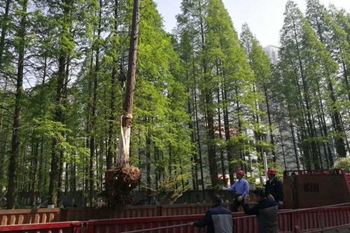为确保移植后景观风姿不减,绿卫中心认真研究,统筹考虑学校整体景观设计规划及树木成长环境等因素,选择最佳移植位置。同时,移植过程中采取多种保护措施:对树形较大的乔木在施工中采取加大土球规格(达到树木胸径的12至14倍)、修剪树冠、涂抹保护剂、置换土壤、施生根粉和肥料、增铺砂砾或渗水管、盲沟等措施,确保树木适应新环境。对绿篱色块等按设计高度抹头修剪、高矮顺序错落栽植、宽度超过2m中间保留操作带以便后期修补、浇水。