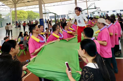此次运动会的亲子游戏,趣味十足,“火箭飞上天”、“爱的直升机”、“火车过山洞”、“太空漫步”等游戏环节一个接着一个,欢呼声沸腾了整个运动场。每项游戏家长和孩子们只有密切配合,默契协作才可以顺利完成游戏项目,小朋友个个奋勇争先,使出浑身解数,和家长默契配合。孩子们的脸上绽放出灿烂的笑容,爸爸的脸上也洋溢着快乐,仿佛回到了孩童时代,与孩子们尽情的游戏,场外妈妈们及时拍照捕捉精彩的镜头,爷爷奶奶外公外婆也来助威呐喊,亲子运动游戏让家长们体验了不一样的亲子运动。