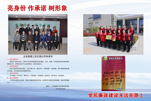 “党支部集体公开承诺”是“一会一评”工作的深化和推进。总务部党委将以“党支部集体公开承诺”契机,认真落实学校《院(系)级单位党组织工作基本规范(试行)》和《党支部工作基本规范(试行)》的有关要求,强化党支部的标准化和规范化建设,创新党员的教育管理方式,在更大程度上发挥党支部的战斗堡垒和党员的模范带头作用。