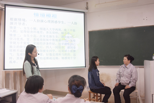 关文莉老师从最近发生在学生宿舍内的自杀新闻事件引出“塑造阳光心理构建和谐宿舍”的主题。她结合宿管工作实际阐述学习心理知识的必要性和重要性,让宿管员了解大学生在大一、大二不同阶段心理发展的特点并且能够辨别学生在宿舍中的心理异常行为,再运用谈话技巧和倾听技巧从“家长”的角度去了解学生、关心学生。情景模拟环节,宿管员们踊跃参与,根据多年工作经验以及运用所学的谈话技巧一一解开“问题学生”的心结,将培训内容学以致用。关文莉老师对宿管员的现场演练表示肯定和认可。她说:“在完全没有预演的情况下,宿管员能够很快消除和学生的隔阂并且热心解答他们的问题,也从侧面反映了宿管员在日常的工作中真正做到了关怀学生、爱护学生。”心理沙龙环节,宿管员们纷纷就自己遇到的学生孤僻、自卑、宿舍矛盾等问题提出意见和看法。