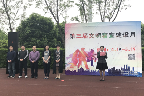 4月19日下午,校第三届文明寝室建设月在校东足球场顺利拉开帷幕。学工部、研工部、国际教育学院、团委、保卫处与文一公司负责人以及学生公寓各楼师生代表共800余人出席了开幕式。