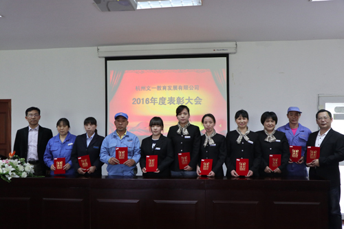 最后,公司总经理王文虎在表彰会上发表总结讲话。五一节来临之际,他首先代表公司领导班子向公司全体干部职工致以节日的问候,向本次受到表彰的先进集体、优秀员工、服务标兵致以热烈祝贺和崇高敬意。随后,他总结回顾了2016年度公司生产经营和各项工作取得的可喜成绩。他指出,2016年是公司全面发展的一年,后勤服务保障质量和管理水平不断提高。2016年是公司极其不平凡的一年,学校甲乙方分开,公司在完成日常服务保障工作的基础上,顺利完成了助力青山湖校区启用、校庆60周年后勤保障、G20后勤保障、内部机构调整等重要工作。2016年,是公司历史性突破的一年,公司取得了学校服务管理型部门考核第二名的历史性最好成绩,获得了全国教育后勤信息与宣传工作先进单位、全国高校伙食工作先进集体、浙江省教育十大影响力人物、浙江省高校感动公寓人物、浙江省万名好党员等省级以上荣誉46个。2016年,是公司全面完成财务目标的一年,师生服务满意度和利润均有显著增长。他强调,这些成绩离不开全体干部职工的辛勤付出,并希望公司全体员工在今后的工作中,继续发扬爱岗敬业,乐于奉献的精神,处处体现先锋模范带头作用,在各自岗位上树立起一面面杭电后勤人的旗帜。2017年公司将在学校的领导下,围绕“组建以杭州文一教育发展有限公司为母公司,形成后勤、教育、科技三驾马车一体两翼,以及若干专业公司为子公司的管理卓越、服务规范、运营高效、保障有力、特色鲜明的全国知名、省内一流的高校后勤服务品牌企业 ”的总目标,践行“五心服务”理念,全面推进安全稳定、阳光后勤、文化后勤、规范后勤建设,为学校省重点大学建设提供一流的后勤服务保障,以优异成绩迎接党的十九大胜利召开。最后,他祝愿广大员工在平凡的工作岗位上通过自己的辛勤劳动和努力创新实现自身的价值,展现风采,实现精彩人生。