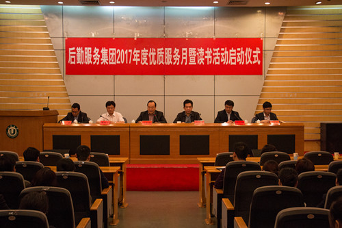 4月28日上午,后勤服务集团在会议中心第一报告厅成功举办2017年度优质服务月暨读书活动启动仪式。集团领导、科级干部、六岗及以上管理骨干、党员、优质服务创建窗口负责人、优质服务创建标兵等200余人参加了启动仪式。仪式由集团党总支书记沙志平主持。