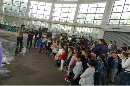 4月21日,幼儿园小班组100余名师生前往我校流体机械工程技术研究中心的喷灌实验室实地参观。