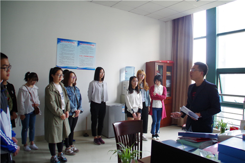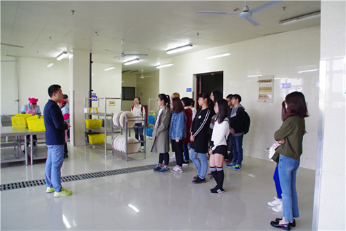 在参观过程中,中心监控主管沈奇对各区块的操作流程、注意事项等情况向同学们逐一讲解,同时对进货的原料索证索票、每餐菜肴留样、原料的生熟食分开等工作在食品安全中起到的重要作用和同学们一一说明。