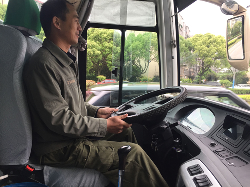 因教学任务的安排,每个周末4个学院的几百名学生从定海校区前往新城校区上课,交通服务中心理所当然地承担起接送学生的任务。从早上7点半至晚上9点,交通中心6辆大巴车每辆车一天需往返两个校区6趟。早晨,笔者来到定海校区,离发车时间还有15分钟,交通中心的驾驶员已早早在校门口带车等候。等候学生来的间隙,驾驶员也不闲着,打开车窗通风,给车里的垃圾桶套上垃圾袋。临近发车时间,学生陆续上车,驾驶员站在车前提醒学生以班级为单位乘坐,上车后提醒班长点名,下车不要落下东西。从定海校区到新城校区只有短短的15公里,等第一批学生上完课把他们送回去,然后接第二批学生,再接第三批。开车的时间虽短,然而等待的时间却很长,开末班的驾驶员常常得等到晚上9点才能回去。