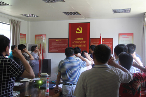 首先,由综合党支部书记付宏涛同志领诵《中国共产党章程》之“党员必须履行的八项义务和党员享有的八项权利”;由水电党支部书记高明朗同志领诵“入党誓词”,党员们在鲜红的党旗下再次举起右手,庄严宣誓:“我志愿加入中国共产党,拥护党的纲领,遵守党的章程,履行党员义务,执行党的决定,严守党的纪律,保守党的秘密,对党忠诚,积极工作,为共产主义奋斗终身,随时准备为党和人民牺牲一切,永不叛党。”