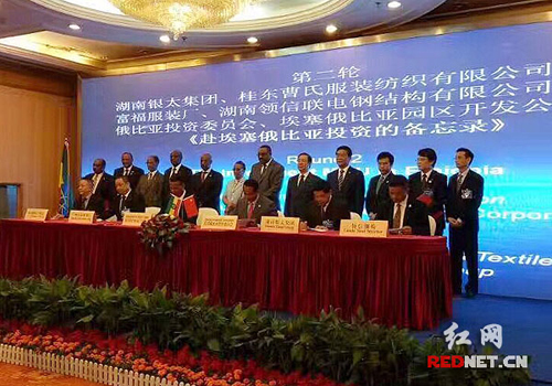 5月19日,“湖南·埃塞俄比亚投资合作对接会”在长沙通程国际酒店举行。来华参加“一带一路”国际合作高峰论坛的埃塞俄比亚总理海尔马里亚姆·德萨莱尼率代表团出席了此次会议。省委书记、省人大常委会主任杜家毫,省委副书记、省长许达哲分别会见客人一行。