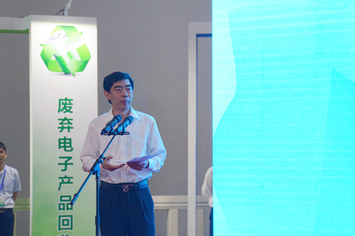 仪式结束后,领导们参观现场展览展示。分别参观了:重点节能技术产品展区、垃圾分类收集运输区、空气污染治理区、建筑节能区、废弃电子回收区。