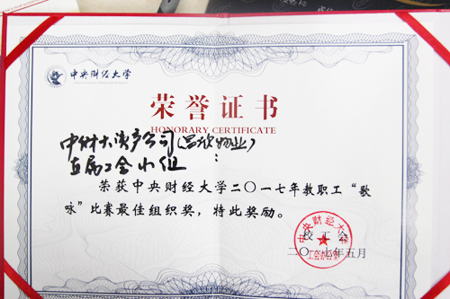 本次比赛共有11支分工会参加。参赛队伍依次登台表演,从歌伴舞、大合唱到诗朗都充分发挥队伍自身特色。每位参赛选手都精神抖擞、神采飞扬,用精心准备的参赛作品尽情演绎着对青春、对梦想的无限追求,展现着自我的风采和团队的青春活力。昌欣物业代表中财大资产经营有限公司第六个出场,员工们身着整齐服装,用饱满的精神状态,向评委及观众演绎原创合唱歌曲《我们走在校园里》。台上一分钟,台下数天练,为参与本次比赛,物业办公室人员根据“精致、善意、真诚”的服务特色,将老歌《我们走在大路上》重新填词并积极组织一线的18名员工和25名行政人员彩排。通过近两周的训练,员工们用高亢嘹亮的歌声,饱满的热情、熟悉的旋律、激昂的歌词征服了在场评委,获得现场最热烈的掌声。经过激烈的角逐,昌欣物业最终荣获2017年教职工歌咏比赛“最佳组织奖”。