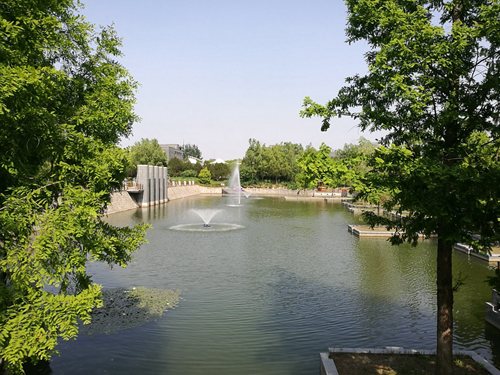 人工湖位于学校良乡校区下沉广场北侧,是学校景观之一,近几年由于地表径流污染物的流入,该湖出现了水流不畅、浑浊、缺氧等现象,破坏了生态系统,影响了校园环境的整洁美观。