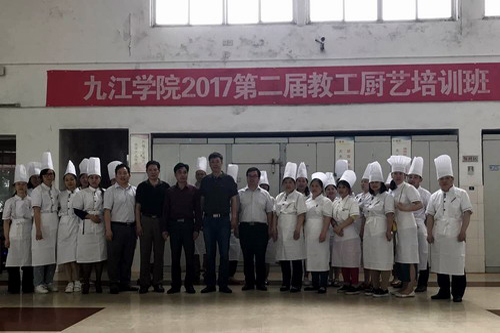为丰富教职工的业余生活,培养科学健康饮食情趣,5月20日上午,校工会与后勤管理处饮食服务中心共同举办的九江学院2017年教职工厨艺培训班在学生二食堂正式开课,来自党群和经管、旅游、土木、艺术学院等部门的50名教工共同奏响了“锅碗瓢盆进行曲”。杨耀防副校长在工会金葆金主席、后勤管理处姜东升处长等陪同下深入厨艺班亲切看望首期培训班学员。