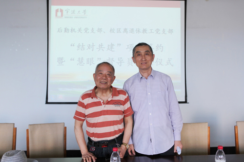 6月8日,宁波大学后勤党委机关党支部、校区离退休教工党支部“结对共建”暨“慧眼”督导员聘任仪式在黄陈月莉楼406会议室举行。校党委组织部副部长刘忠秀、校离退休教工党委副书记王振里、后勤管理处处长胡宝华及后勤党委委员、支部书记、后勤机关党支部党员,校区离退休教工党支部委员等参加活动。活动由后勤党委书记柴哲军主持。