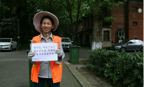 “孩子们,毕业了也不能乱丢垃圾。保持你们在华农的高素质呦!”
