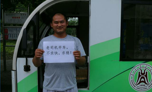 一辆辆小绿车穿行在华农校园凹凸不平的减速带上,司机缓慢地行驶过每一条减速带,忍不住感叹,校车是真的慢啊。