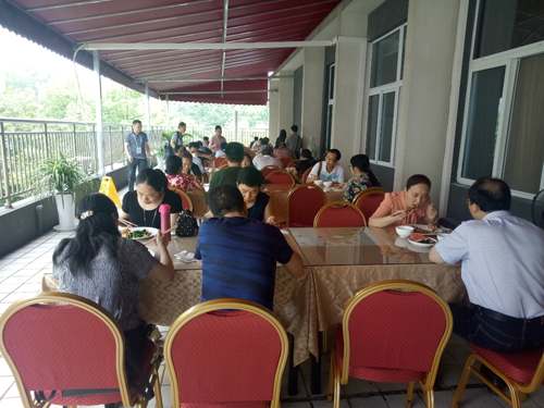 接待任务的圆满完成与中心注重细节、以人为本的服务态度分不开。因就餐位有限,兰苑教工食堂在三楼露台摆建就餐区域,将原本仅供观光的露台变成了90人的用餐餐位,提高了使用率的同时,也使客人可以置身于更接近大自然的位置用餐,得到了阅卷老师的一致好评。