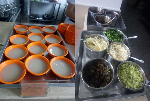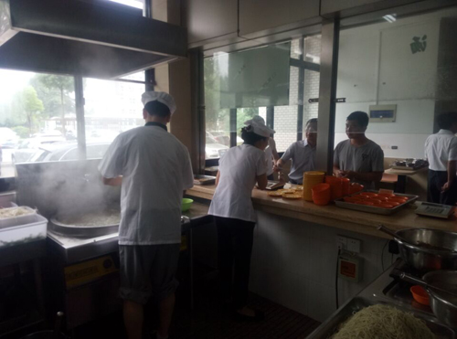 经过数周的酝酿、计划、准备,从设备的选购、安装、社会餐饮市场的考察,到早班人员的确定、面条品种的增加、小菜种类的丰富,6月14日早餐如期顺利推出面条明档供应。面条品种从原来简单的雪菜、香干等两三个品种,增加到肉丝、肉圆、大排、猪肝、腰花、肥肠等八个品种,光鸡蛋品种就有荷包蛋、茶叶蛋、白煮蛋、水铺蛋等,同时还增加了面条的自选调料,如蒜泥、香菜、姜丝、芹菜、雪菜等,小菜品种又新推出卤水花生、糖醋蒜头、糖醋萝卜皮、爽口泡菜等品种,保证每日早餐可选择的小菜达到八种以上……
