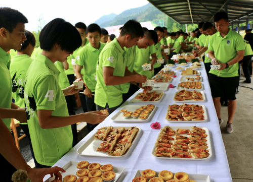 为保证此次活动顺利进行,我部门高度重视,精心筹备,与校方多次沟通协调,根据警校学生特性定制备餐方案,准备适合的原材料。当天清晨,工作人员就进入冷餐会食材的准备阶段,穿竹签、包锡纸、洗水果等等;下午2点起进入会场开始布置。鲜花、甜品交错摆放,荔枝、西瓜等应季水果,小龙虾、披萨、饮料一应俱全,还有各类烧烤、铁板烧,共计40余种。冷餐会得到了同学和老师的喜爱和好评。